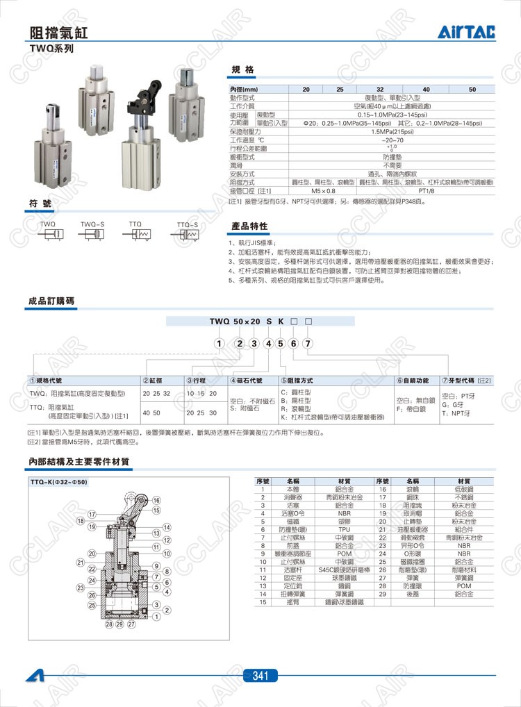 亞德客AIRTAC,TWQ20*10-C,TWQ20*10-B,TWQ20*10-R,TTQ20*10-C,TTQ20*10-B,TTQ20*10-R,TTQ20*10-K,阻擋氣缸