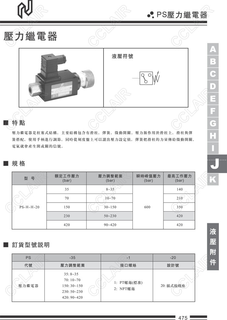PS-35-1-20,PS-35-2-20,PS-70-1-20,PS-70-2-20,PS-150-1-20,PS-150-2-20,PS-230-1-20,PS-230-2-20,PS-420-1-20,PS-420-2-20,Northman臺灣北部精機,壓力繼電器