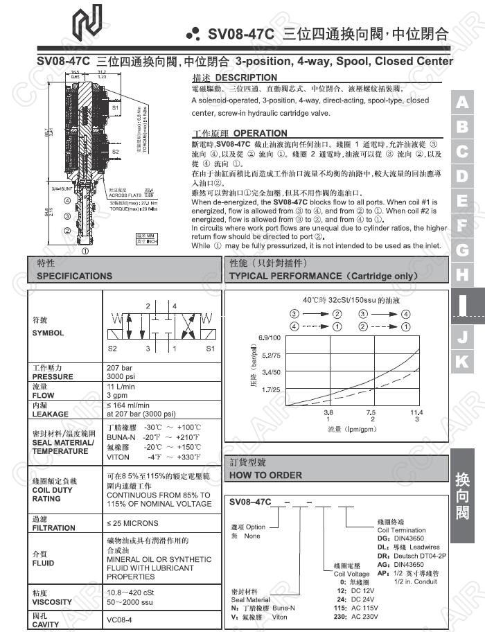Northman臺灣北部精機,三位四通換向閥SV08-47C-N-0-DG,SV08-47C-N-0-DL,SV08-47C-N-0-DR,SV08-47C-N-230-DR,SV08-47C-N-230-AG,SV08-47C-N-230-AP,SV08-47C-V-115-DG,SV08-47C-V-115-DL,SV08-47C-V-230-AG,SV08-47C-V-230-AP