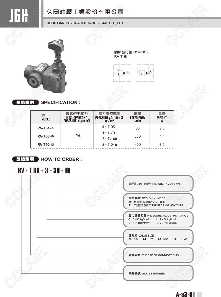 RV-T03-0-30-TU,RV-T03-0-32-TU,RV-T03-1-30-TU,RV-T03-1-32-TU,RV-T06-2-30-TU,RV-T06-2-32-TU,RV-T06-3-30-TU,RV-T06-3-32-TU, RV-T10-0-30-TU,RV-T10-0-32-TU,RV-T10-1-30-TU,RV-T10-1-32-TU,JeouGang臺(tái)灣久岡,先導(dǎo)式溢流閥