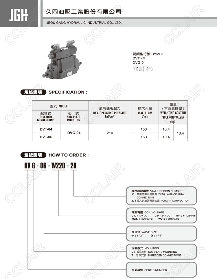 JeouGang臺灣久岡,電磁引導(dǎo)方向閥DVG-04-G12/50-10,DVG-04-G12/50-20,DVG-04-G24/50-10,DVG-06-W110/50-20,DVG-06-W220/50-10,DVG-06-W220/50-20,DVT-04-G12/50-10,DVT-04-G12/50-20,DVT-04-G24/50-10,DVT-06-W110/50-20,DVT-06-W220/50-10,DVT-06-W220/50-20