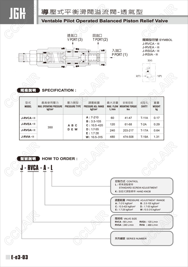 JeouGang臺灣久岡,引導式溢流閥J-RVCA-A-L-10,J-RVCA-A-K-10,J-RVCA-B-L-10,J-RVCA-B-K-10,J-RVEA-C-K-10,J-RVEA-D-L-10,J-RVEA-D-K-10,J-RVEA-E-L-10,J-RVEA-E-K-10,J-REGA-A-  L-10,J-REGA-A-K-10,J-REGA-B-L-10,J-REGA-B-K-10,J-REGA-C-L-10