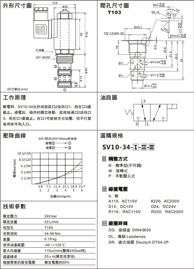 型號: SV10-34-P-0-DL,SV10-34-P-A110-DL,SV10-34-P-D12-DL,SV10-34-P-R110-DL,SV10-34-P-A220-DL, SV10-34-P-D24