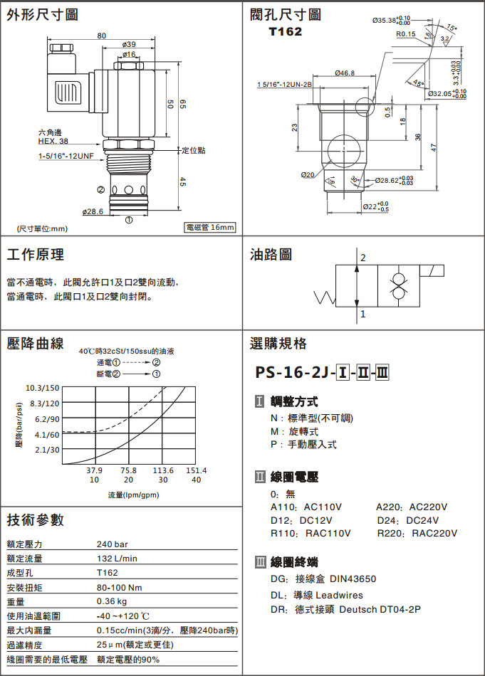 PS-16-2J-P-0-DR,PS-16-2J-P-A110-DR,PS-16-2J-P-D12-DR,PS-16-2J-P-R110-DR,PS-16-2J-P-A220-DR,PS-16-2J-P-D24-DR,PS-16-2J-P-R220-DR,兩通常開型電磁換向閥