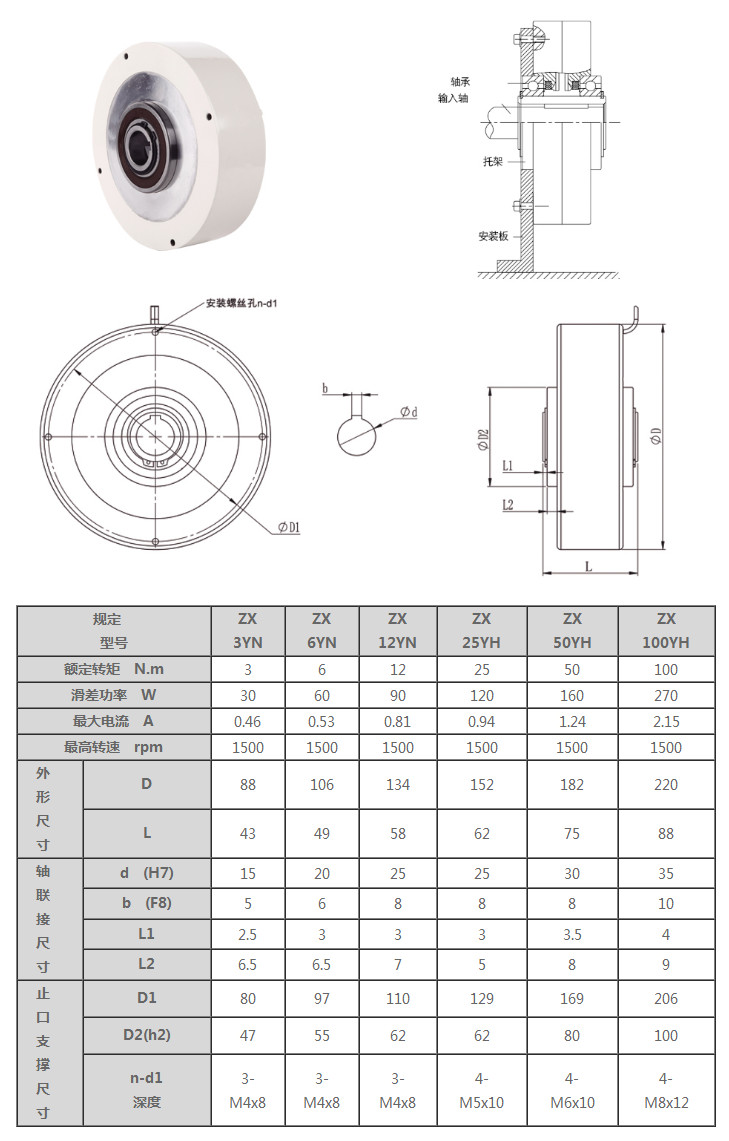 ZX3YN,ZX6YN,ZX12YN,ZX25YH,ZX50YH,ZX100YH,空心軸超薄磁粉制動器