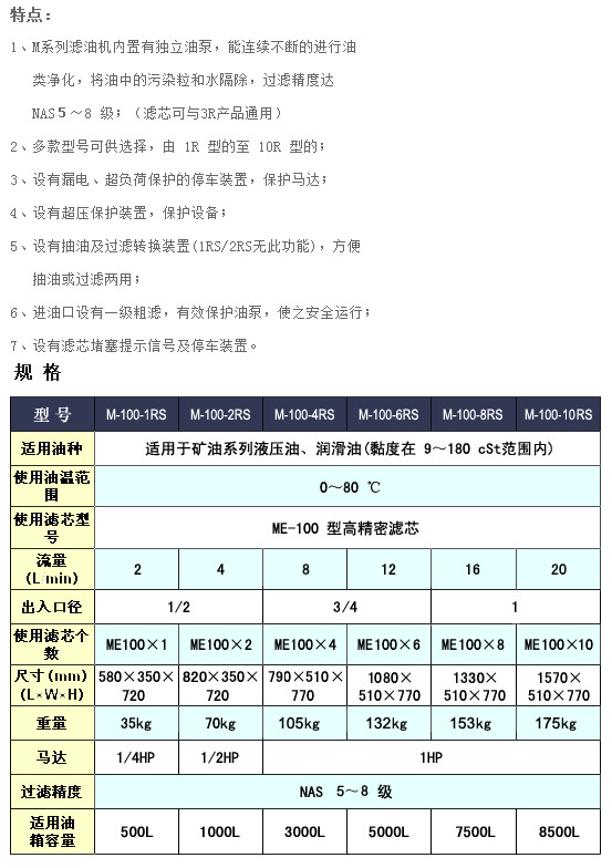 M-100-1RS,M-100-2RS,M-100-4RS,M-100-6RS,M-100-8RS,M-100-10RS,精密濾油小車