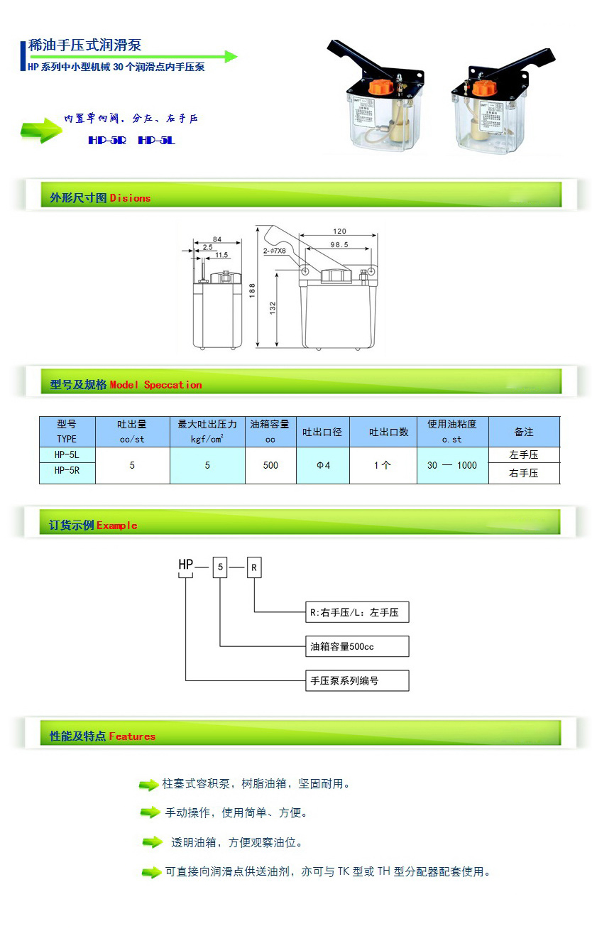 HP-5L,HP-5R,稀油手壓式潤滑泵