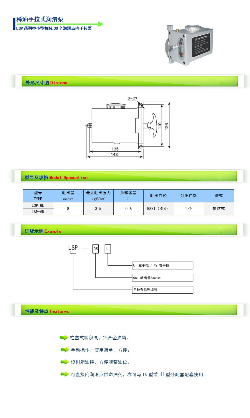 LSP-8L,LSP-8R,稀油手拉式潤(rùn)滑泵