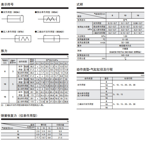 BDA6*5,BDA6*10,BDA6*15,BDA6*20,BDA6*25,BDA6*30,BDA10*5,BDA10*10,多形式安裝式氣缸BDAS系列
