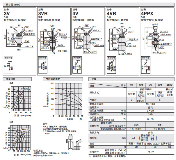 3V,3VR,4V,4VR,4PPX,TAC手動(dòng)閥--操縱桿式閥