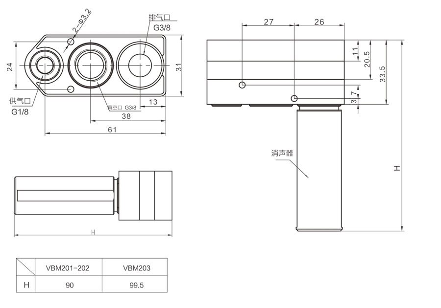 | D | G1/8 | G3/8 | 內(nèi)置消音器 |