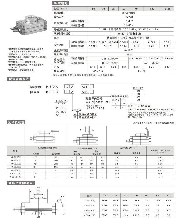 擺臺(tái)氣缸 MSQA-10A,MSQA-20A,MSQA-30A,MSQA-50A,MSQA-10R,MSQA-20R,MSQA-30R,MSQA-50R, MSQA-10A-S,MSQA-20A-S,MSQA-30A-S,MSQA-50A-S,MSQA-10R-S,MSQA-20R-S,MSQA-30R-S, MSQA-50R-S, MSQA-10L3,MSQA-20L3,MSQA-30L3,MSQA-50L3,MSQA-70L3,MSQA-100L3,MSQA-200L3