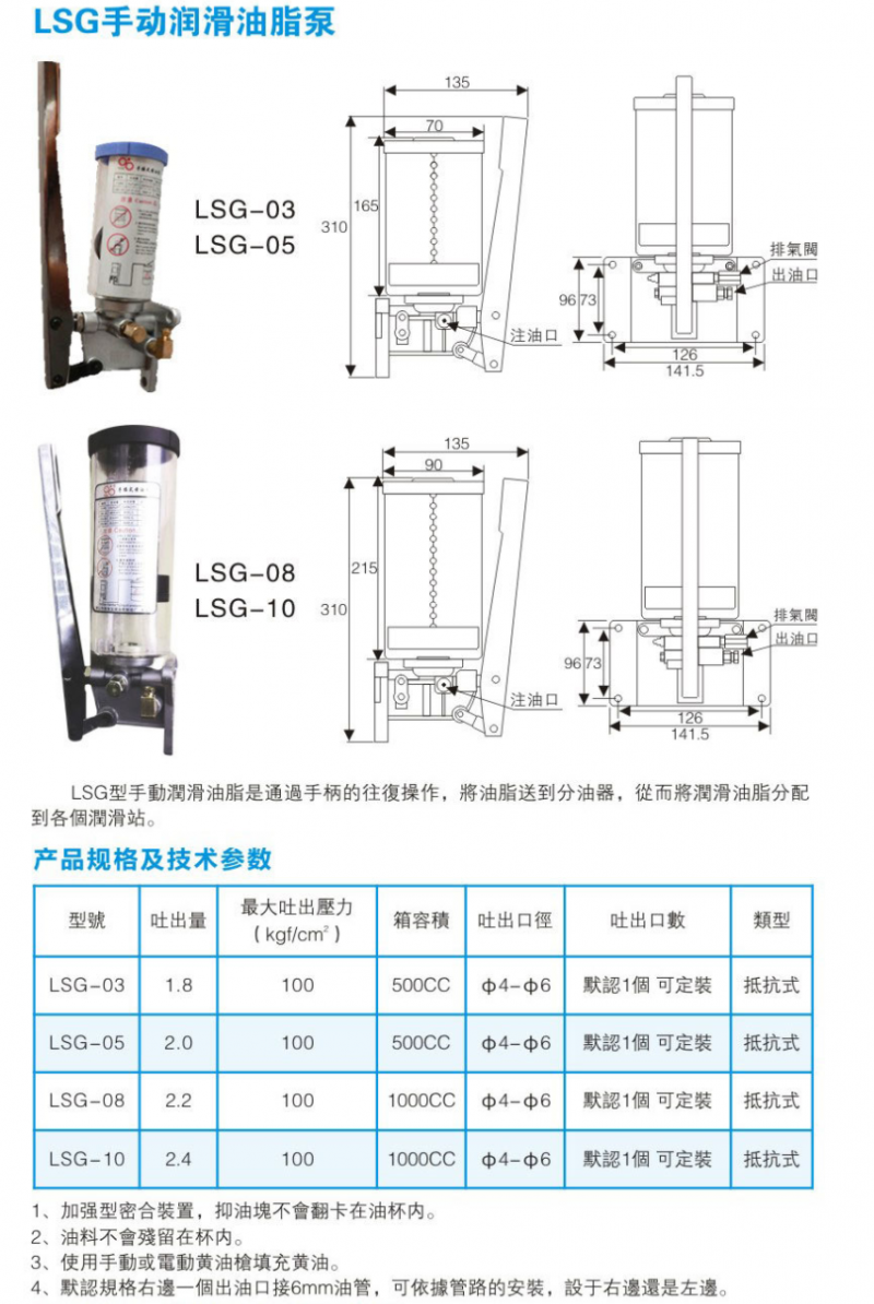 手動潤滑油脂泵LSG-03-0.5L,LSG-05-0.5L,LSG-08-1L,LSG-10-1L