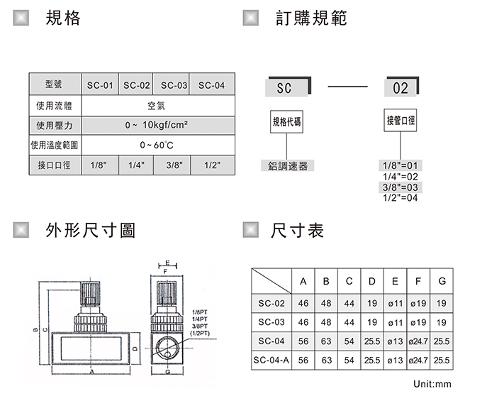 調(diào)速閥SC-01,SC-02,SC-03,SC-04
