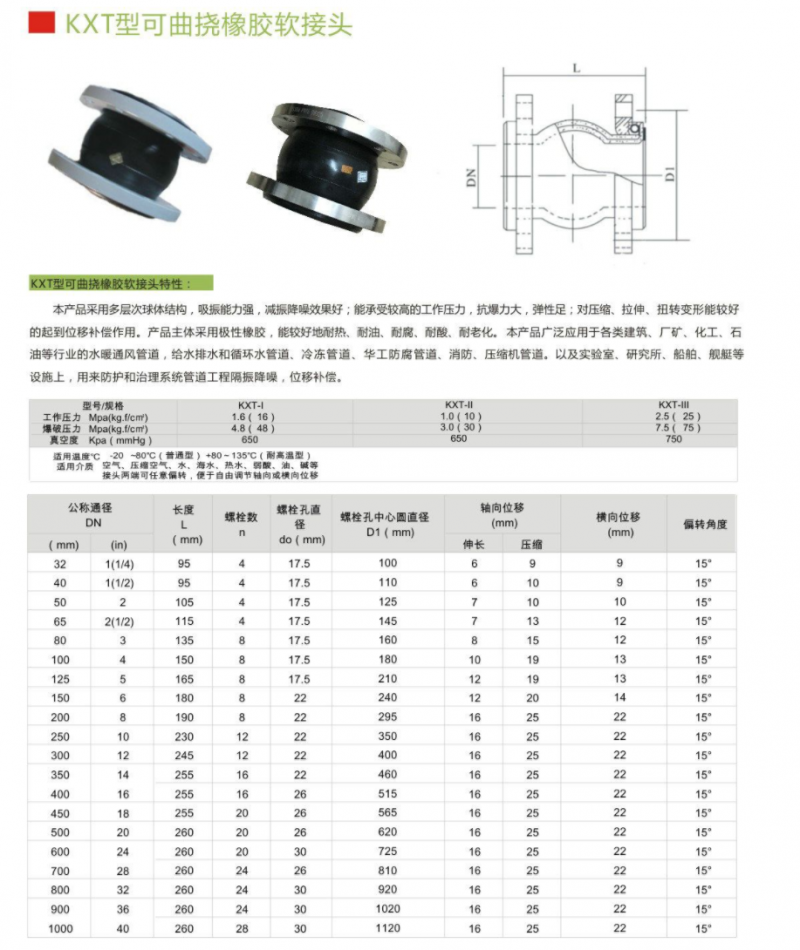 可曲撓橡膠軟接頭KXT-I,KXT-II,KXT-III