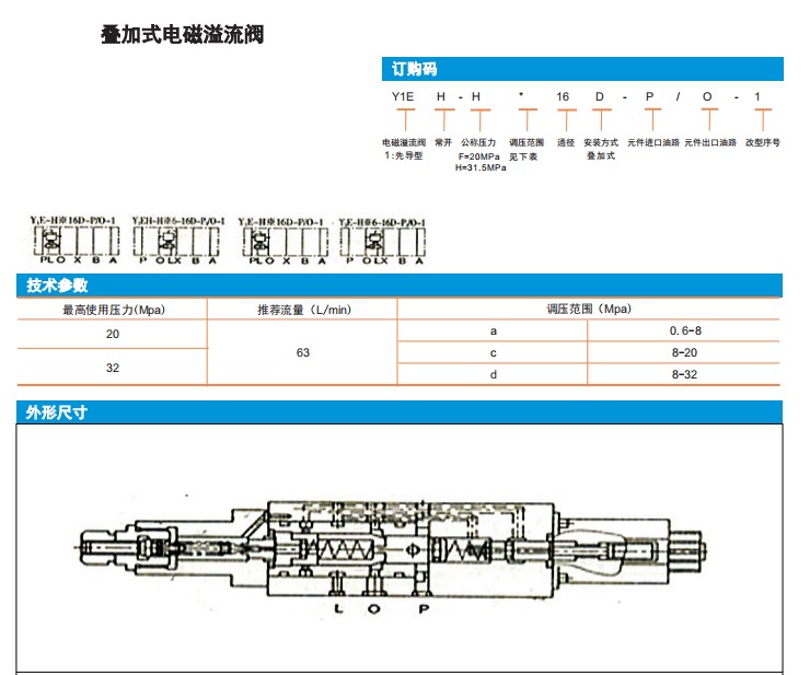 Y1EH-Ha16D-P/O-1,Y1EH-Hc16D-P/O-1,Y1EH-Hd16D-P/O-1,疊加式電磁溢流閥