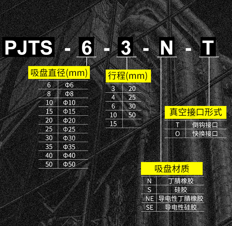 吸盤PJTS-30-6,PJTS-30-15,PJTS-30-30,PJTS-30-50,PJTS-35-6,PJTS-35-15,PJTS-35-30,PJTS-35-50,PJTS-40-6,PJTS-40-15,PJTS-40-30,PJTS-40-50,PJTS-50-6,PJTS-50-15,PJTS-50-30,PJTS-50-50,PJTS-60-10,PJTS-60-30,PJTS-60-50,PJTS-60-70,PJTS-80-10,PJTS-80-30,PJTS-80-50,PJTS-80-70