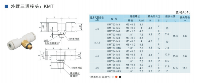 SMC型外螺三通接頭KMT03-M3,KMT23-M3,KMT03-M5,KMT23-M5,KMT03-M6,KMT23-M6,KMT03-01S,KMT23-01S,KMT04-M3,KMT04-M5,KMT04-M6,KMT04-01S,KMT06-M3,KMT06-M5,KMT06-M6,KMT06-01S,