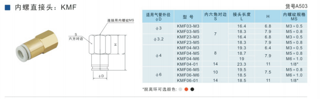 SMC型內(nèi)螺直接頭KMF03-M3,KMF23-M3,KMF03-M5,KMF23-M5,KMF03-M6,KMF23-M6,KMF04-M3,KMF04-M5,KMF04-M6,KMF06-M5,