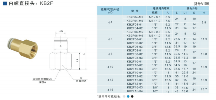 SMC內(nèi)螺直接頭KB2F12-04,KB2F16-03,KB2F16-04,KB2F04-01,KB2F04-02,KB2F06-01,KB2F06-02,KB2F06-03,KB2F08-01,KB2F08-02,KB2F08-03,KB2F10-01,KB2F10-02,KB2F10-03,KB2F10-04,KB2F12-02,KB2F12-03,