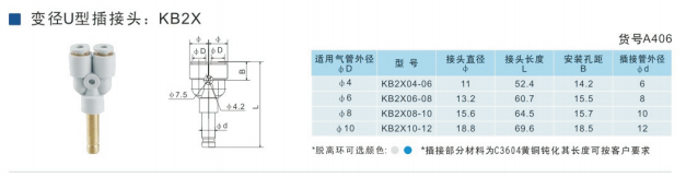 SMC型變徑U型插接頭KB2X04-06,KB2X06-08,KB2X08-10,KB2X10-12,KB2X12-16,