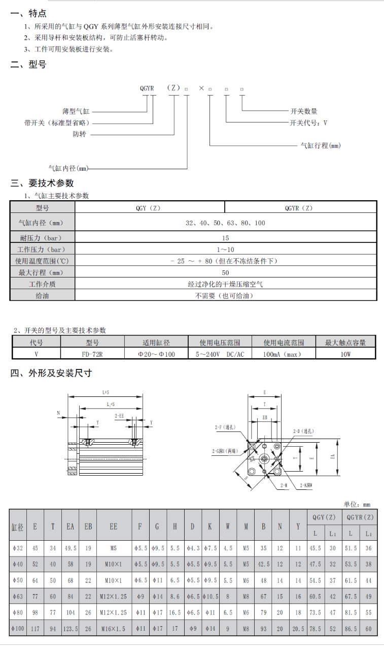 QGY(Z)帶導桿防轉(zhuǎn)薄型氣缸