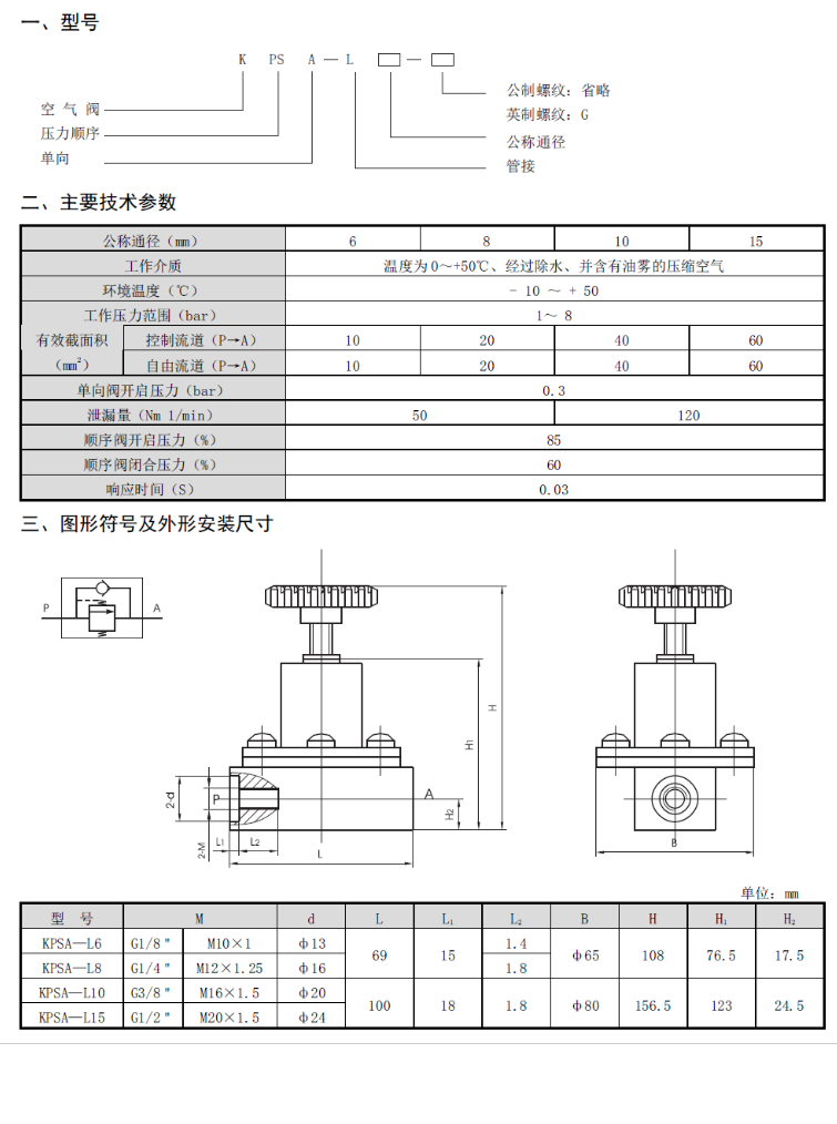 KPSA系列單向壓力順序閥
