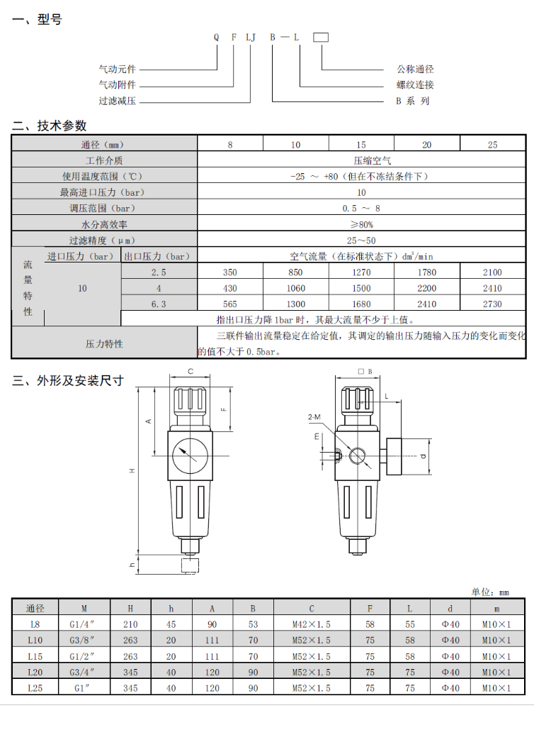 QFLJB系列空氣過濾減壓閥