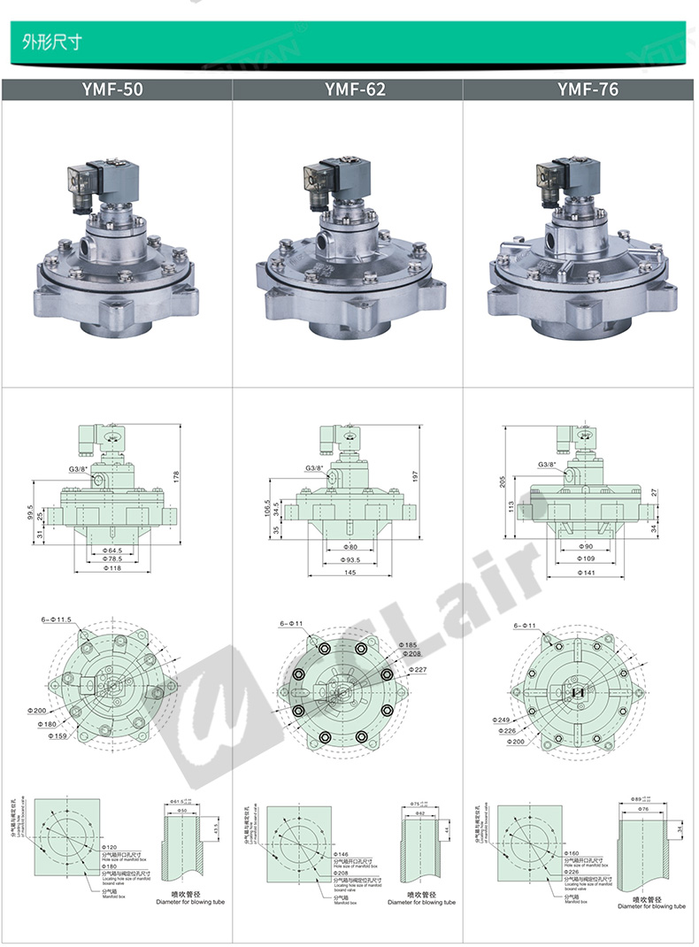 MCF-Y-25,MCF-Y-40S,YMF-50,YMF-62,YMF-102,MCF-Y-102S,MCF-Y-62S,YMF-76,MCF-Y-76S,MCF-Y-89S,MCF-Y-50S淹沒式脈沖閥,