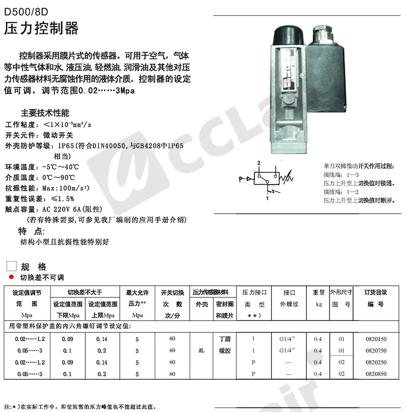 0845180,0843580,0845280,0843680,壓力控制器 防爆 D501/7D切換差可調(diào)