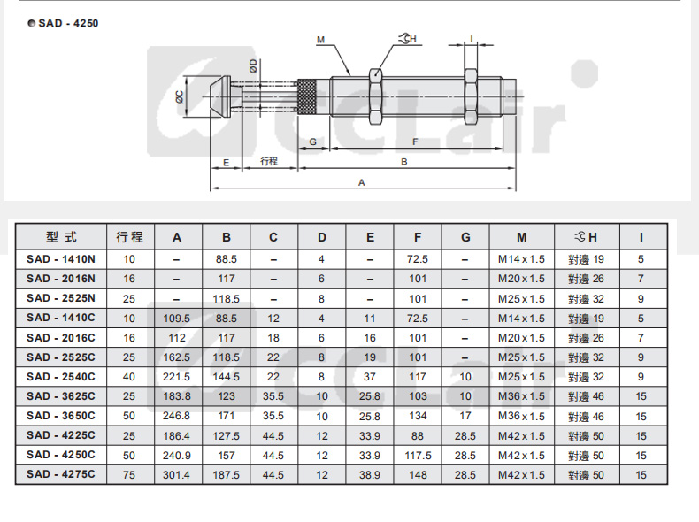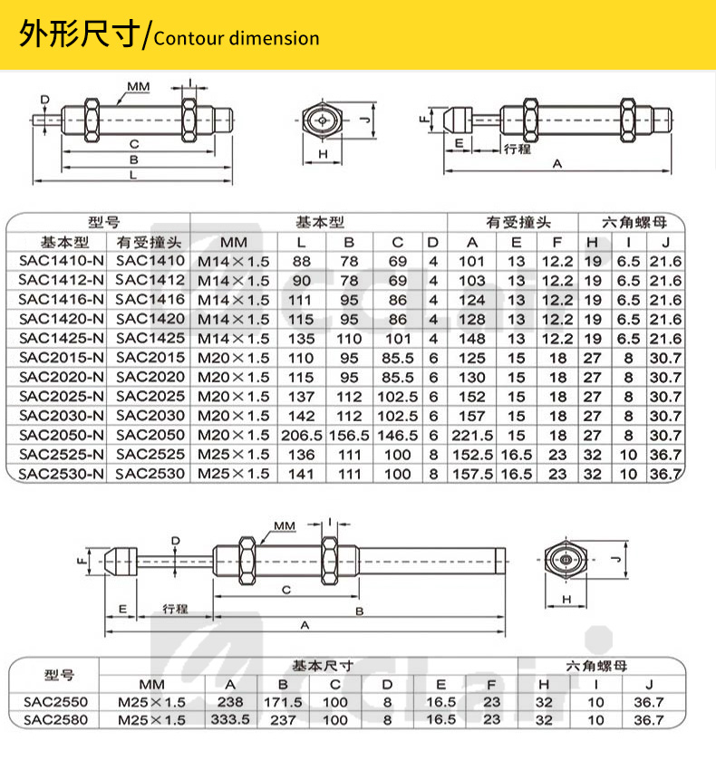 SAD-1410N,SAD-1410C,SAD-2016N,SAD-2016C,SAD-2525N,SAD-2525C,SAD-2540C,緩沖器,臺灣氣立可CHELIC型 SAC不可調(diào)式油壓 SAD-3625C,SAD-3650C,SAD-4225C,SAD-4250C,SAD-4275C,
