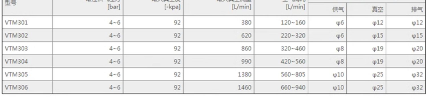 VTM301/302/303/304/3055/306-D-N PM401/402/403/404B-A-D PM405/406B-A-B PM401/402/403/404/405/406B-K15/25L-A-D PM481/482/483/484B-A-D PM485/486B-A-B PMI/PMX401 VTM高真空型真空發(fā)生器