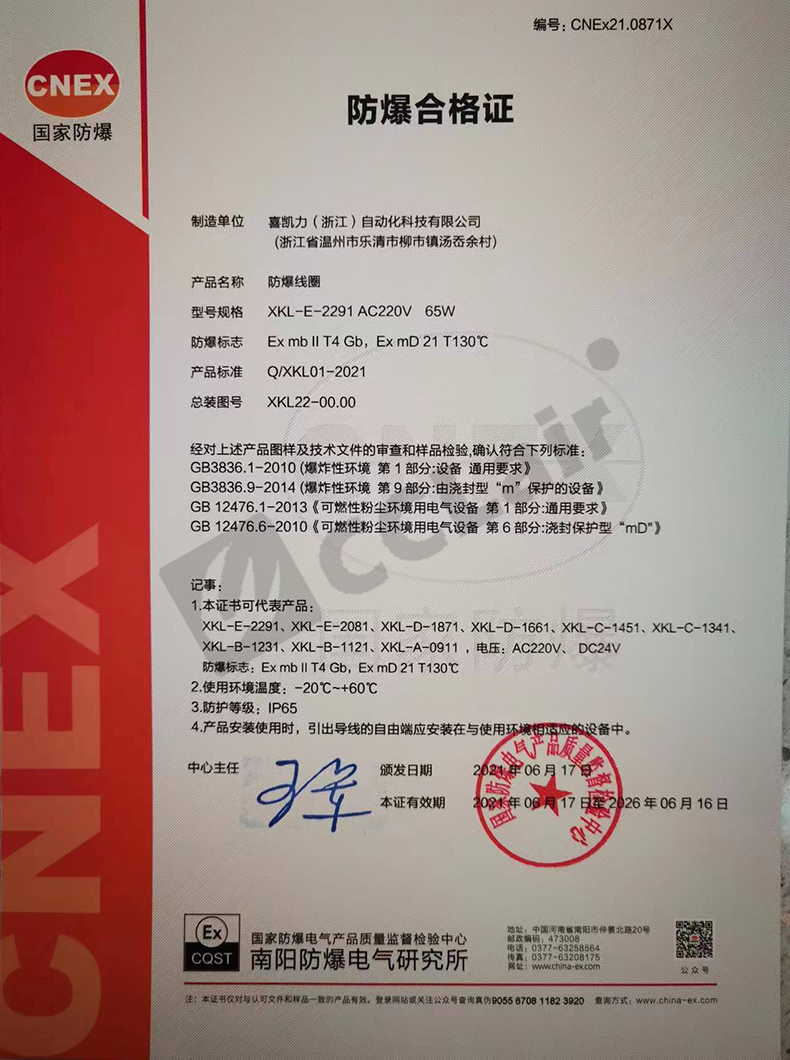 XKL-A-0911,XKL-B-1121,XKL-B-1231,XKL-C-1341,XKL-C-1451,XKL-E-2081,XKL-D-1661,XKL-D-1871防爆電磁閥