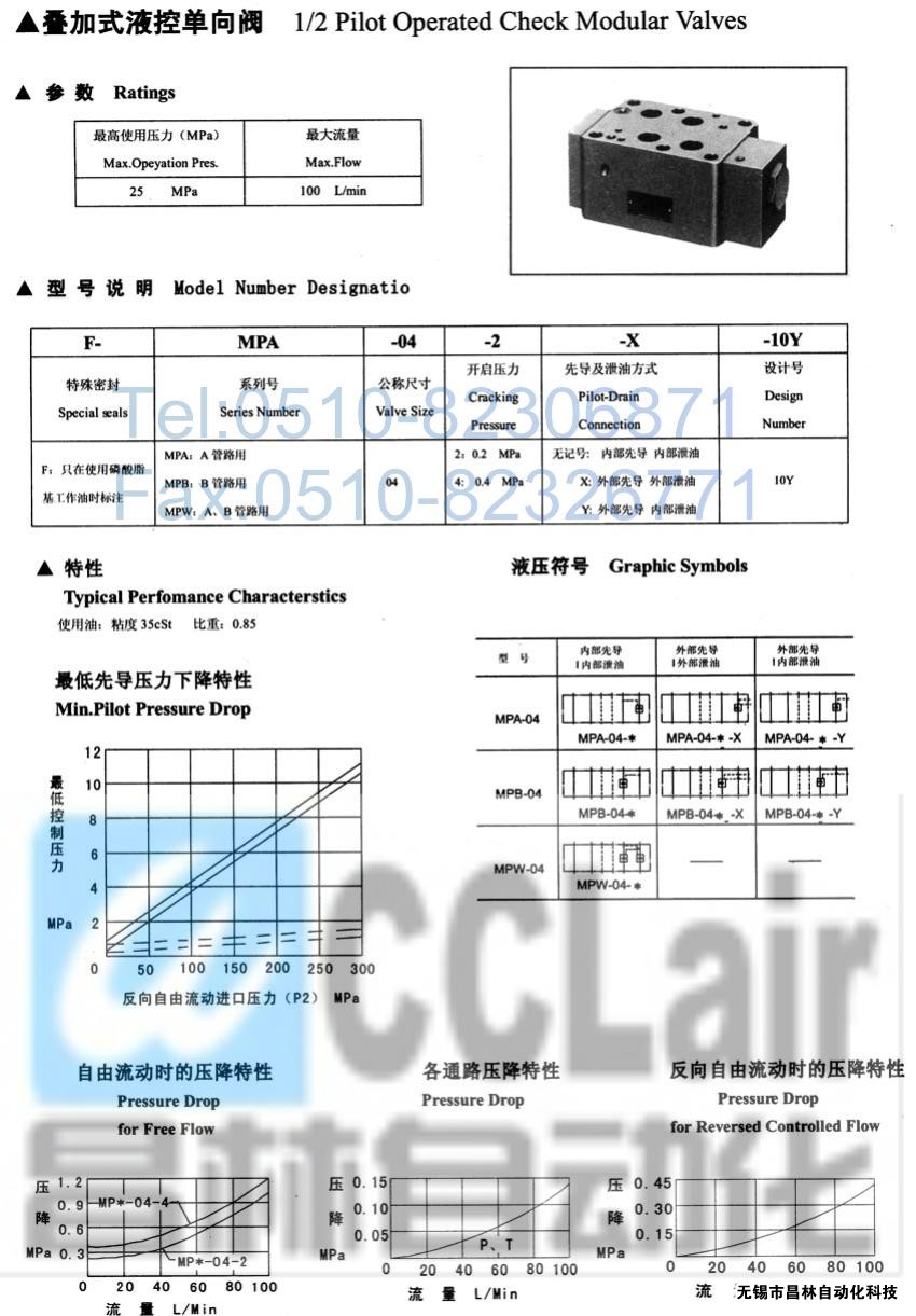 MPA-04-2-X-10Y,MPA-04-2-Y-10Y,MPA-04-4-X-10Y,疊加式液控單向閥,榆次油研疊加式液控單向閥,YUKEN疊加式液控單向
