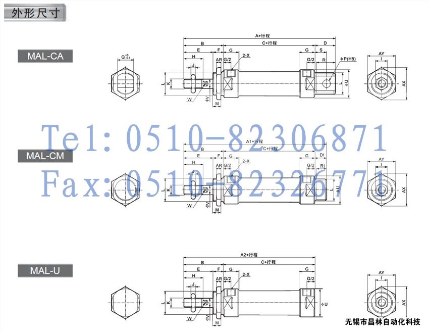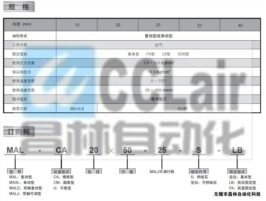 MAL-CA16-500,MAL-CM20-25,MAL-U20-25,鋁合金迷你氣缸