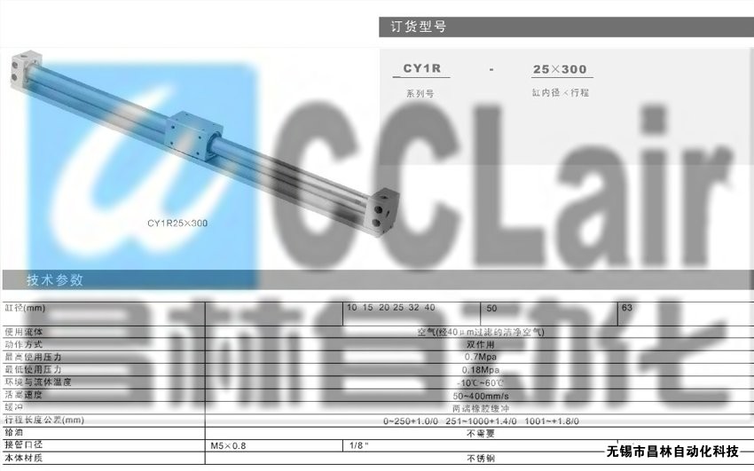 CY1R-63*450,CY1R-63*500,CY1R-63*600,CY1R-63*700,CY1R-63*800,磁耦式無(wú)桿氣缸