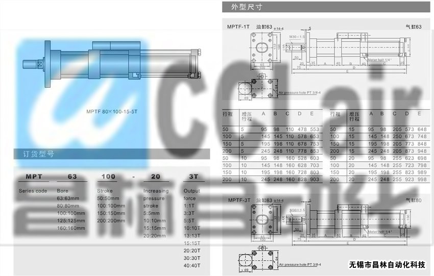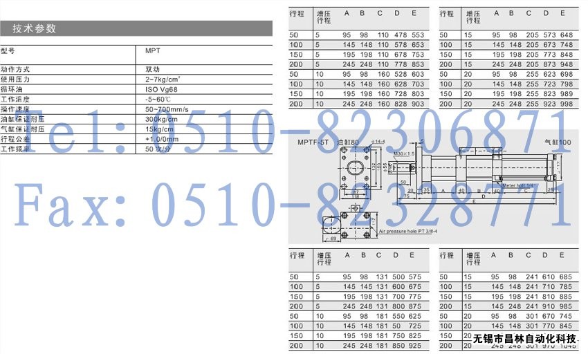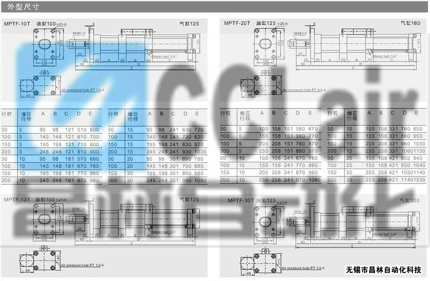 MPTF125-50-20-1T,MPTF125-50-20-3T,MPTF125-50-20-5T,MPTF125-50-20-10T,氣液增壓缸
