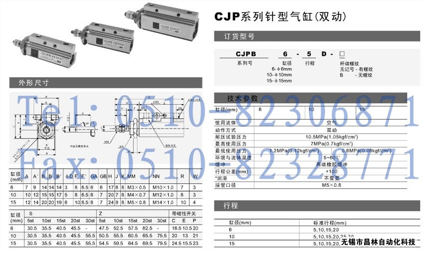 CJPB10-20D,CJPB10-25D,CJPB10-30D,CJPB15-5D,CJPB15-10D,CJPB15-15D,針型氣缸(雙動(dòng))