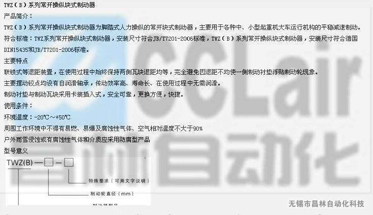 TWZ-200,TWZB-200,TWZ-300,TWZB-310,液壓腳踏式制動器,生產廠家,價格