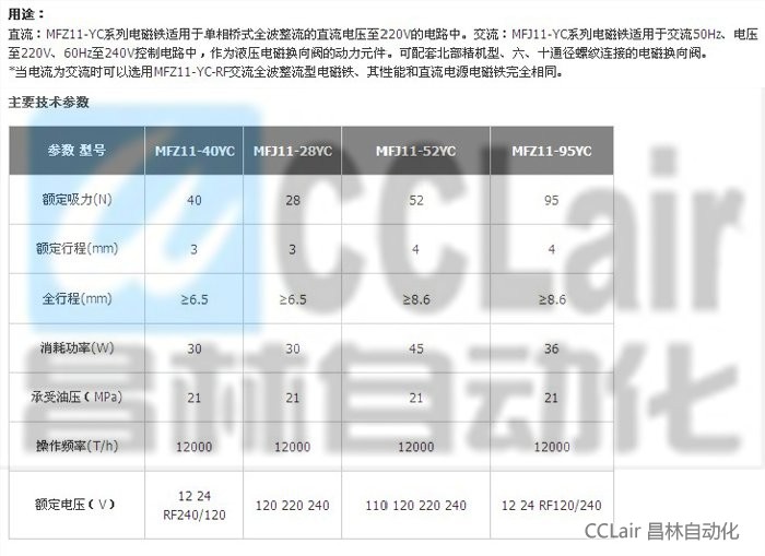 MFJ11-28YC,MFJ11-50YC,交流濕式閥用電磁鐵