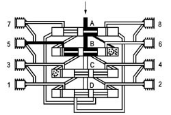 | 六、使用說明 1、在系統(tǒng)中推薦最多通過“兩級”來進(jìn)行潤滑劑的分配。 2、排出油口1和2始終不能關(guān)閉。 3、始終使用原配的排出油口油嘴零件組。 4、裝拆調(diào)換油嘴零件時(shí)要從每側(cè)的上部或最下部吐出口開始。 5、如果吐出口要補(bǔ)充關(guān)閉,合并潤滑劑量(改流到下面低數(shù)的吐出口排出),必須去掉油嘴體,用M10×1螺塞封堵按下圖范例連接。 |