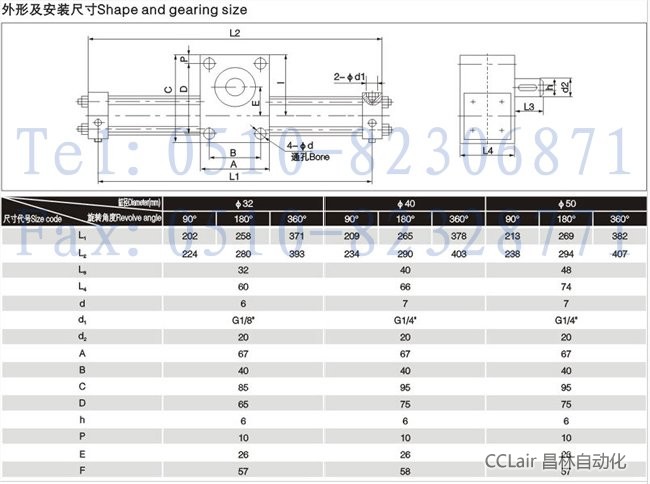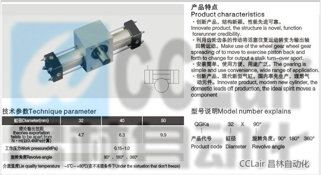 QJKa50*90°,QJKa50*180°,QJKa50*360°,齒輪齒條擺動(dòng)氣缸(軸式)