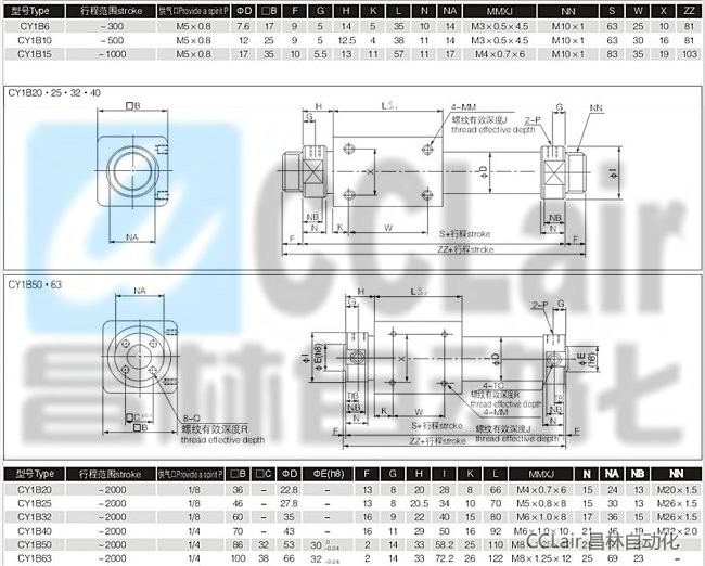 CY1S63H-250,CY1S63H-300,CY1S63H-350,CY1S63H-400,CY1S63H-450,無桿氣缸,生產(chǎn)廠家,價格