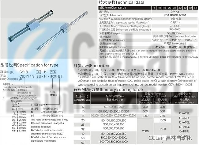 CY1S63H-250,CY1S63H-300,CY1S63H-350,CY1S63H-400,CY1S63H-450,無桿氣缸
