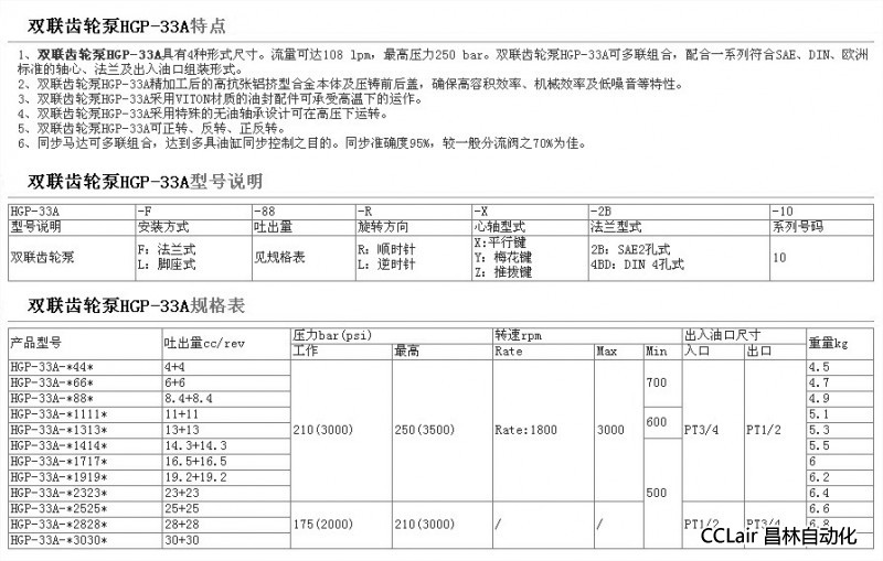 HGP-33A-F17+17R,HGP-33A-F19+19R,HGP-33A-F23+23R,雙聯(lián)齒輪泵,