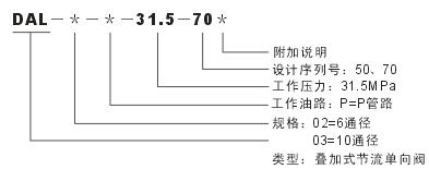 DAL型疊加式節(jié)流單向閥,它是單向閥和節(jié)流閥串聯(lián)組合的一種節(jié)流單向閥,它的作用是只允許油液?jiǎn)畏较蛲ㄟ^并用節(jié)流閥進(jìn)行流量調(diào)節(jié),而反向則截止。