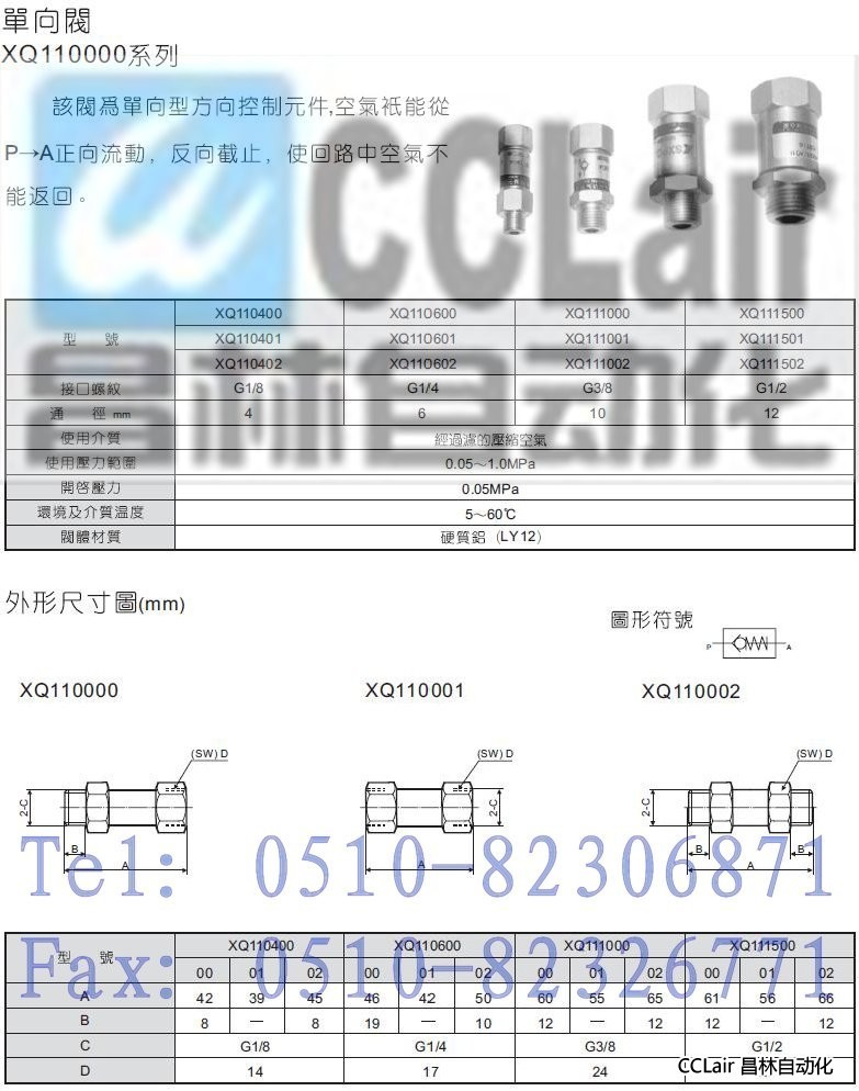 XQ111001,XQ111501,XQ110402,XQ110602,XQ111002,XQ111502,單向閥 |