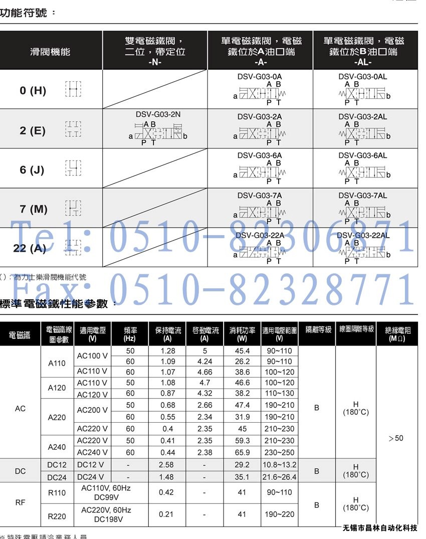DSV-G03-6A,DSV-G03-6AL,DSV-G03-6B,DSV-G03-6BL,DSV-G03-6C,DSV-G03-6N,濕式電磁鐵操作換向閥
