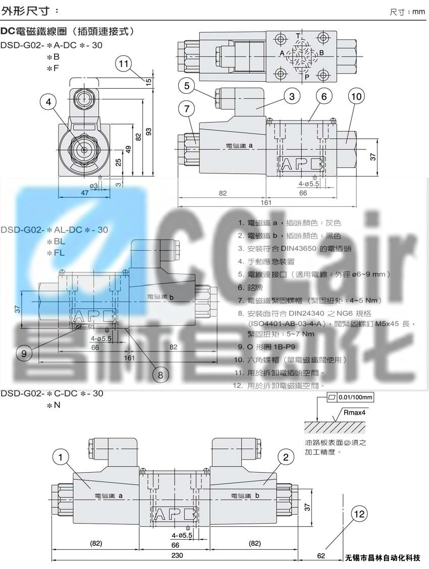 DSD-GO2-5N,DSD-GO2-6N,DSD-GO2-7N,DSD-GO2-8N,DSD-GO2-11N,DSD-GO2-22N,濕式電磁鐵操作換向閥
