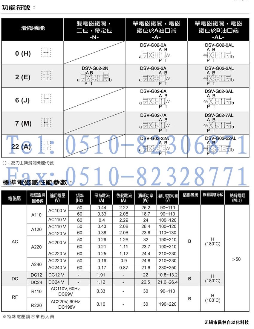 DSD-GO2-6AL,DSD-GO2-7AL,DSD-GO2-8AL,DSD-GO2-11AL,DSD-GO2-22AL,濕式電磁鐵操作換向閥